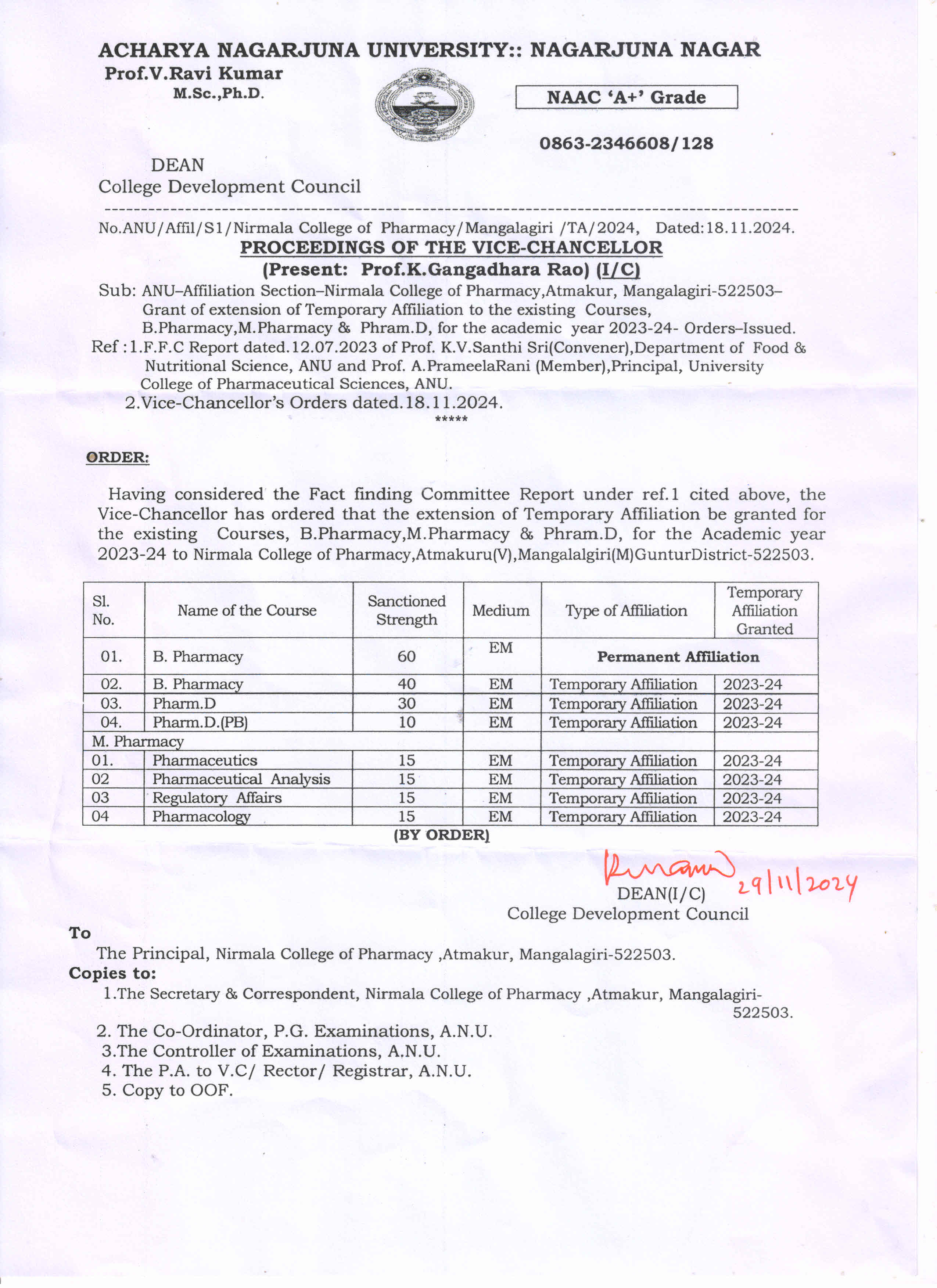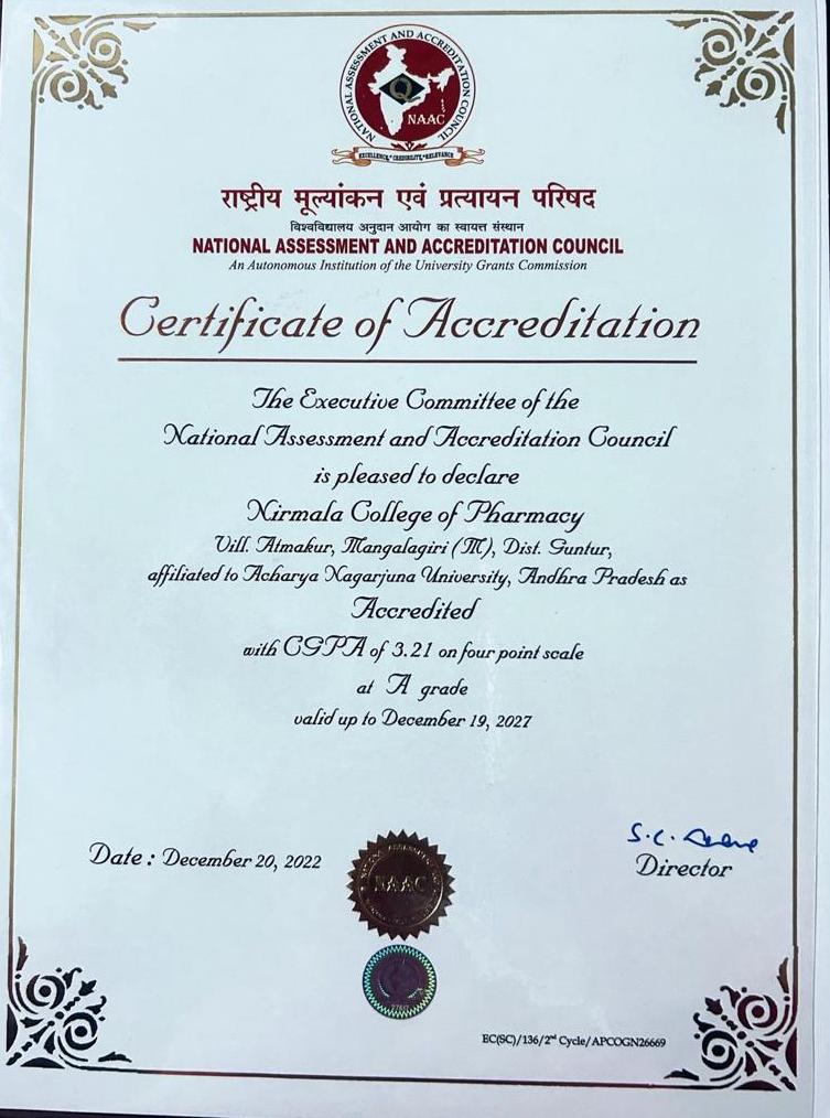 Nirmala College of Pharmacy is proudly approved and affiliated by the highest statutory bodies in India.
