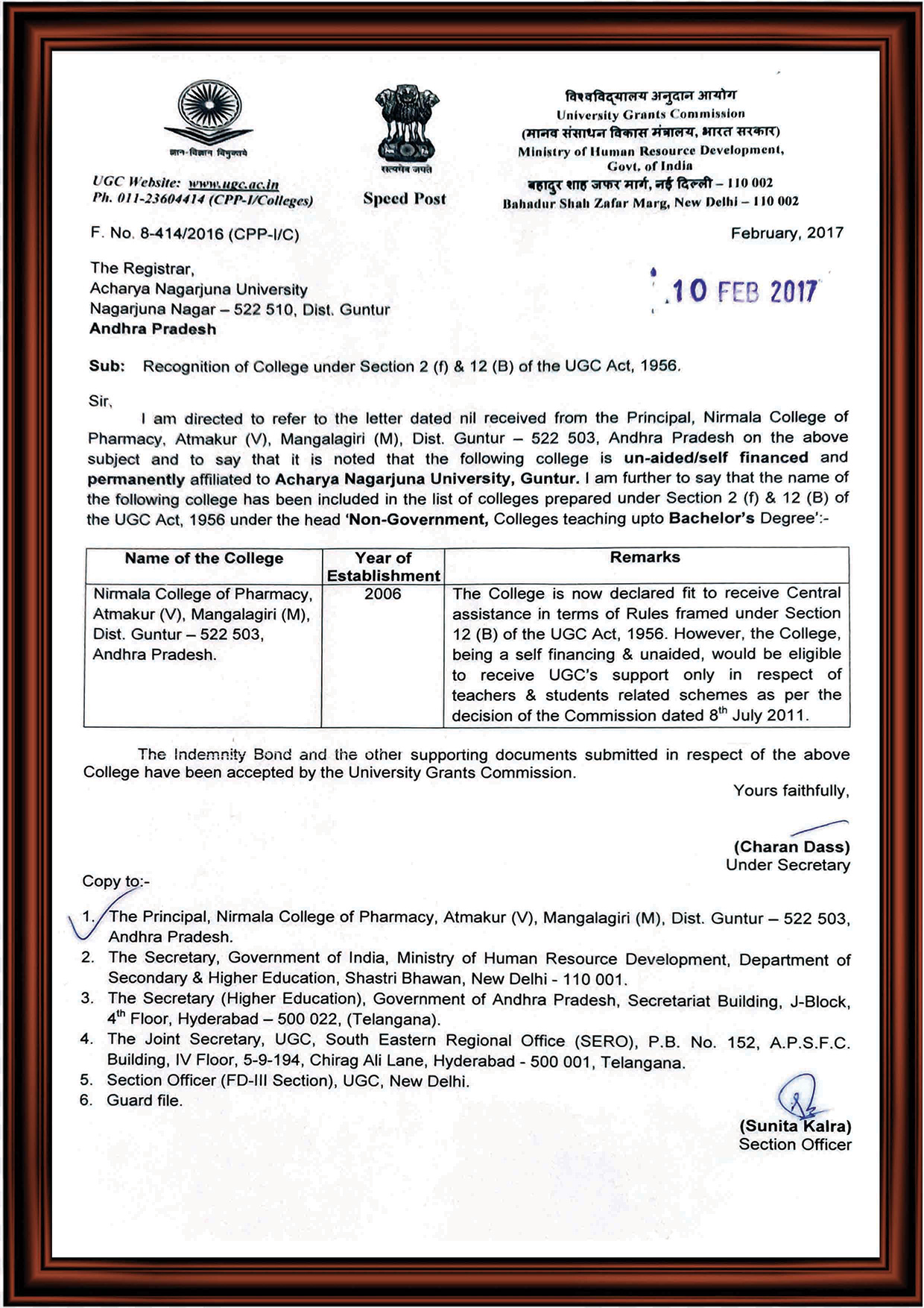 The college has consistently earned recognition for its academic standards, infrastructure, extracurricular contributions, and commitment to holistic development.